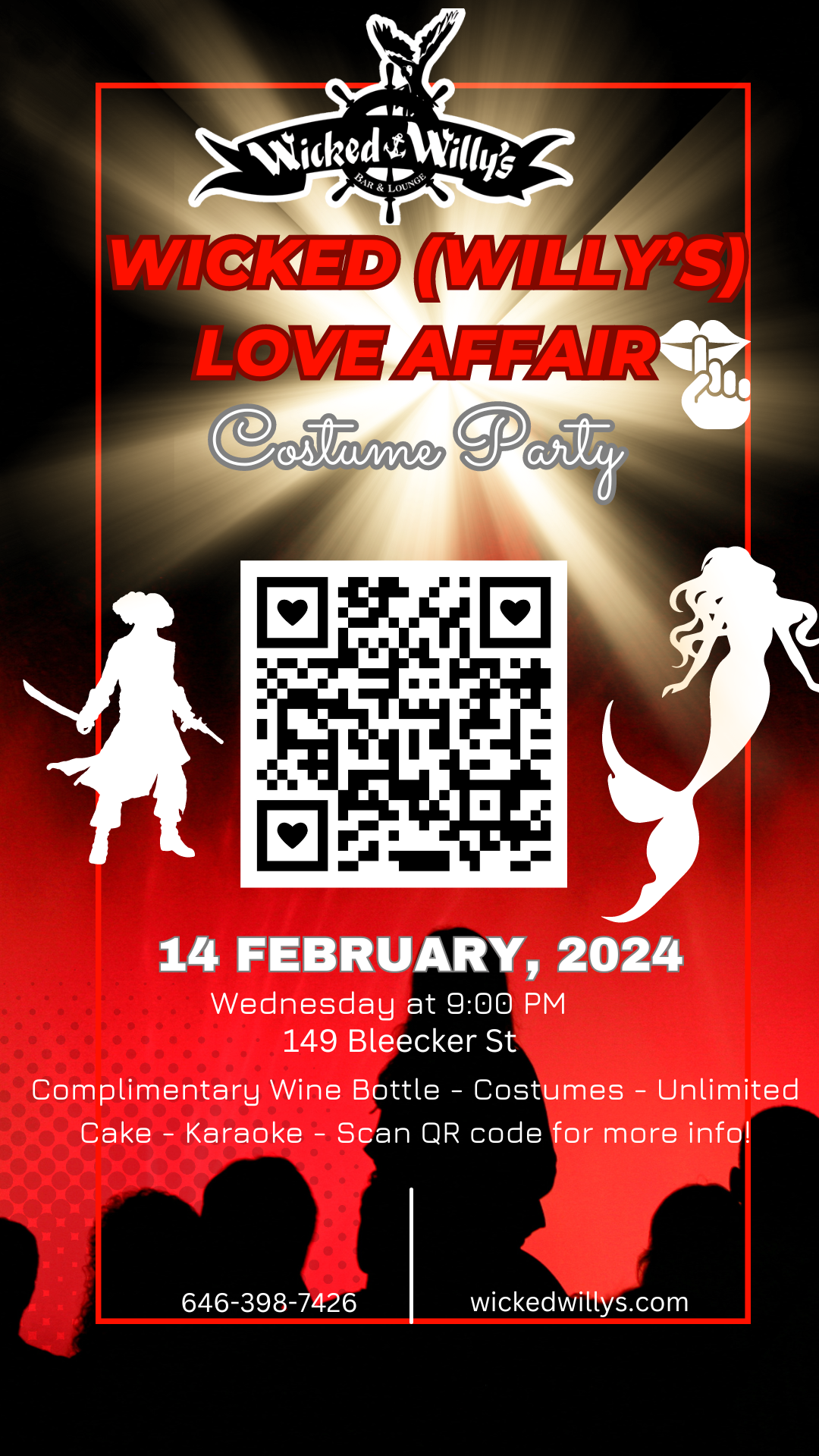 Live Broadcast of the Grammy Awards: Watch the ceremony live on big screens with surround sound as the biggest names in music battle for those iconic golden gramophones. Grammy-Themed Drink Specials: Sip on signature drinks inspired by this year’s nominees and Grammy legends. VIP AREA seating is FIRST COME-FIRST SERVED. Karaoke & Dance Party: After the awards, the party doesn’t stop! We will have KARAOKE all night to sing all our grammys hit songs and recreate performances! DONT MISS OUT! Kitchen open all night.This night is all about celebrating music, style, and good company. So gather your friends, put on your best outfit, and get ready to enjoy a glamorous night of music, drinks, and fun at Wicked Willy’s!